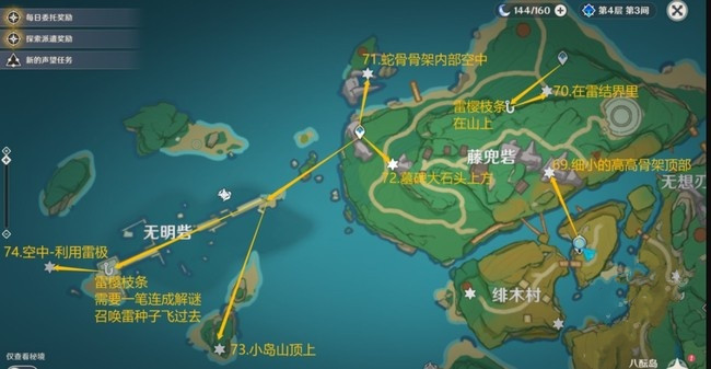 74:空中-利用雷极,雷樱枝条需要一笔连成解谜召唤雷种子飞过去