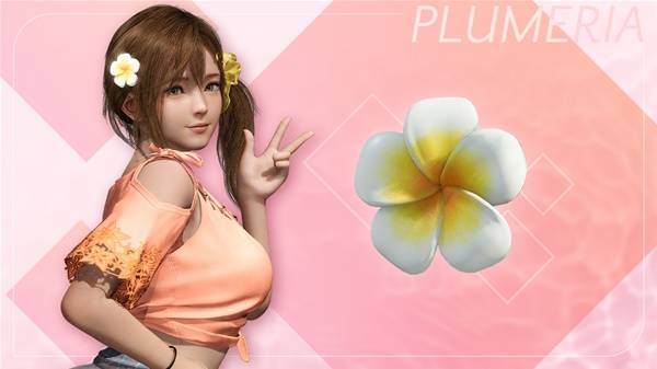 可在游戏中使用、带有缅栀花发饰的发型。
