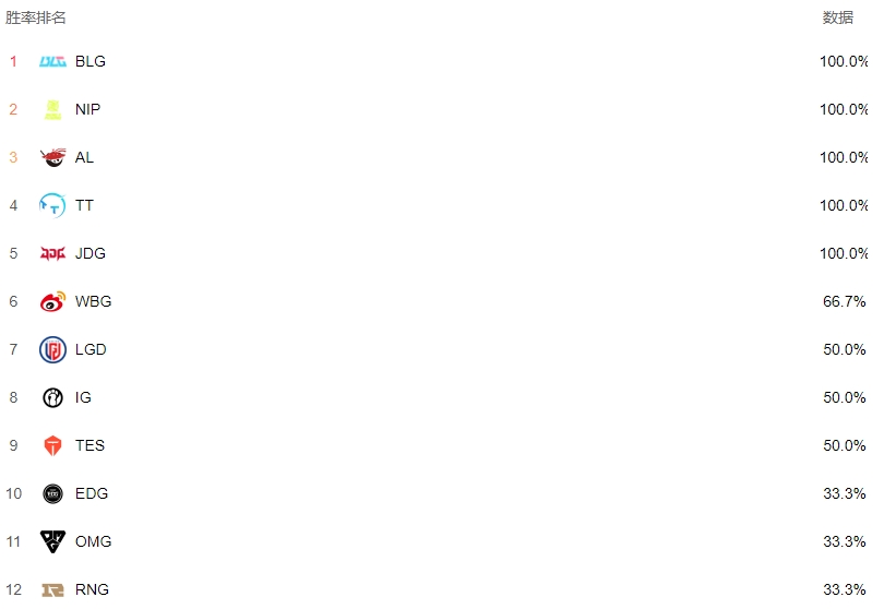 战队胜率排行榜