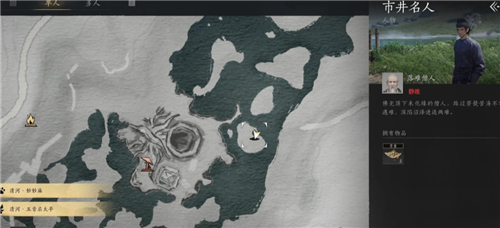 2.去拿包袱位置的地图左上角小岛上有个黑人头标识(市井名人)位置,对话静难