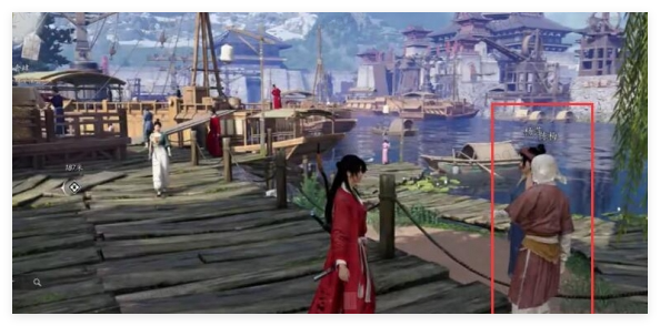 2、在柳树的下面可以找到NPC,对话【陈梅】和【杨萍】,就可以去获取这个胭脂;