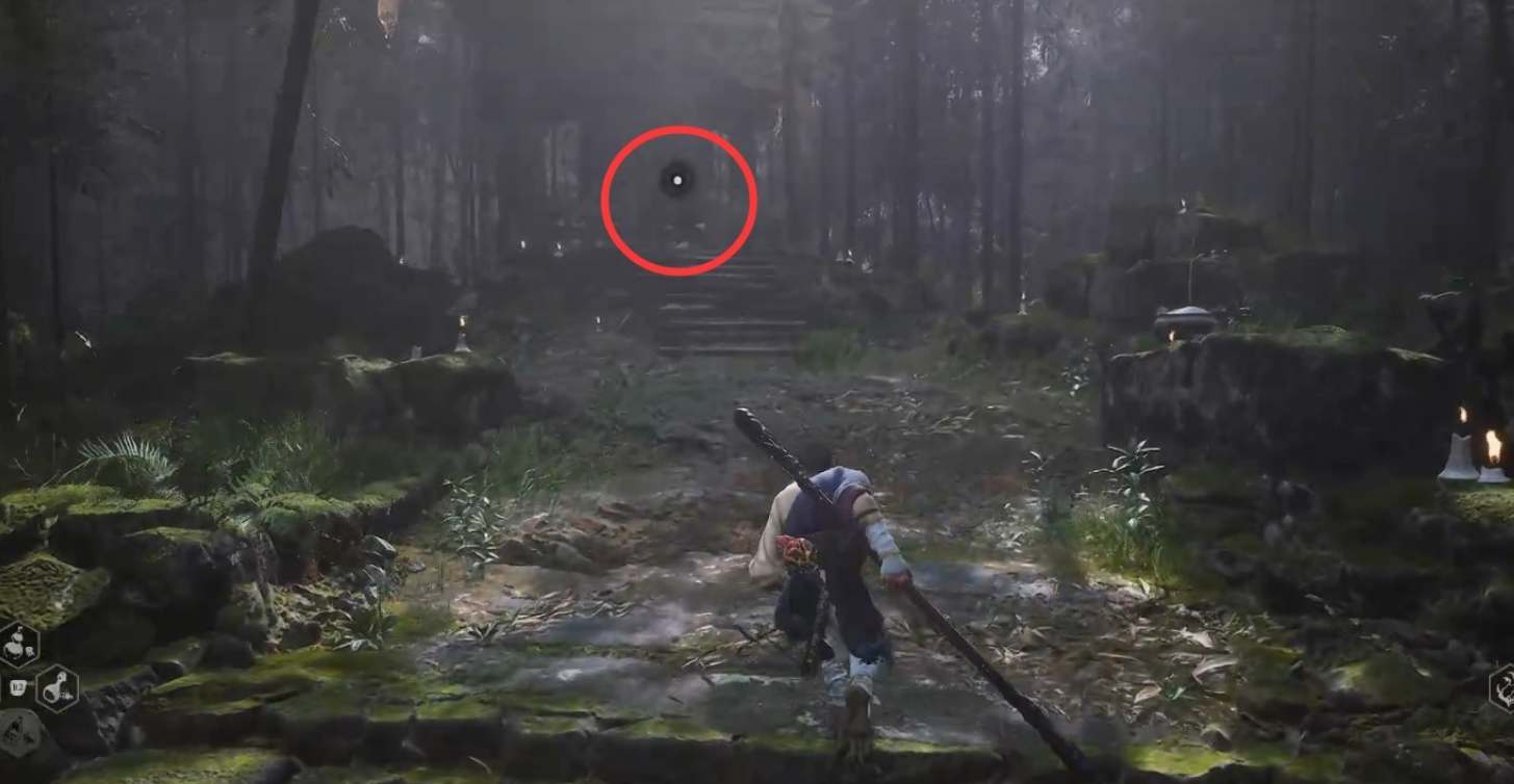 4、翠竹林-白雾泽遇到申猴后往下走,到大水池打白衣秀士,打完去坐标找到第三个钟,敲响后就可以开启隐藏地图旧观音禅院了。