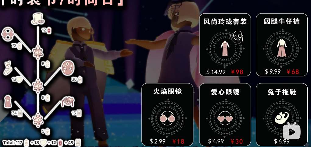 如下图所示,兑换所有的复刻道具需要117个蜡烛和13爱心、13升华蜡烛。
