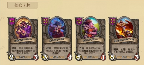 3、传统的铜须,小瞎眼,宝石走私商,达卡莱附魔师的这套战吼体系我们可以在决赛里面玩的,没有的话也是可以去尝试下这关卡尔加等纯野猪人组成的决赛阵容。