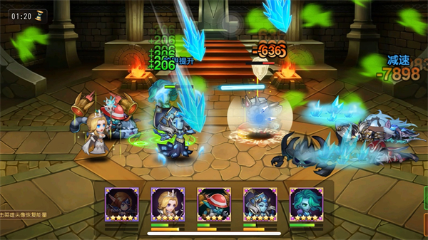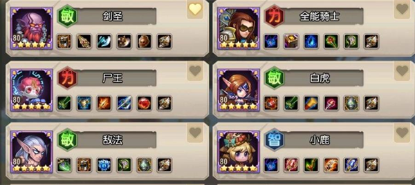这一套阵容充满了物理输出力量,令人瞩目。主要发挥作用的等级点定位于70级左右,美杜莎的石化技能结合其他物理输出角色,实现惊人的战斗力。但要留意的是,骷髅王相对较为脆弱,需要注意保护
