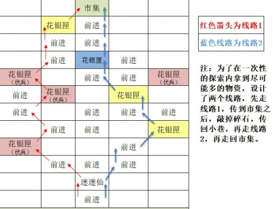 3、小巷:迷迷仙-花银匣(红)-花银匣(红)-花银匣(红)-花银匣(黄)-市集-迷迷仙-花银匣(黄)*2-花银匣(蓝)-市集
