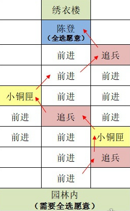 5、园林内:前进-追兵-小铜匣-追兵-小铜匣-前进-追兵-陈登-绣衣楼