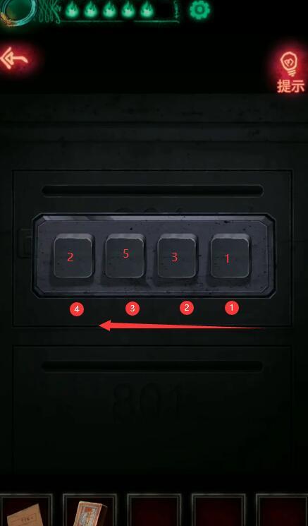 2、柜子密码的线索在信封上,密码是从左往右按的次数。
