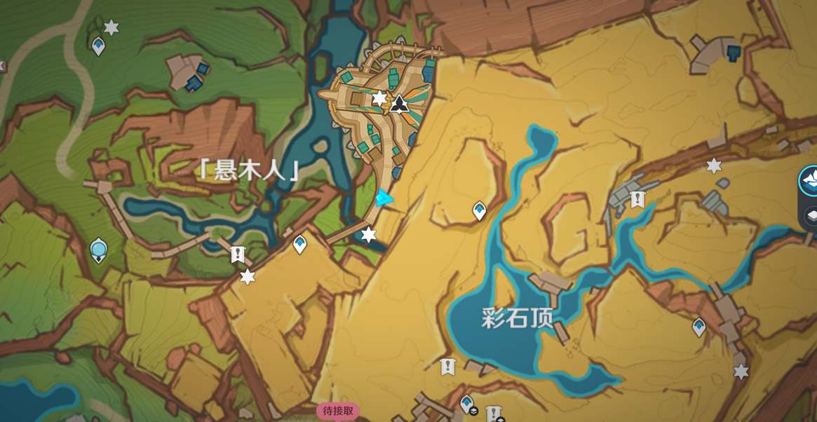 从所在点的传送锚点走到悬崖边,慢慢向下飞,看好平台即可发现。