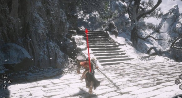 2.进入一直走到有下雪的外面,看到悬崖后走上楼梯。