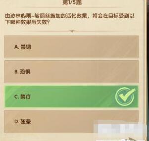 1、由沁林心雨-娑丽丝施加的活化效果,将会在目标受到以下哪种效果后失效?