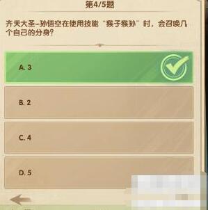 4、齐天大圣-孙悟空在使用技能“猴子猴孙”时,会召唤几个自己的分身?