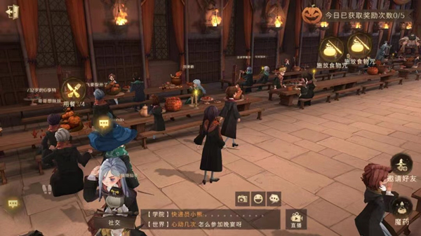 1、玩家需要等到礼堂晚宴开启后,喝下隐形药水潜入其他学院的晚宴。