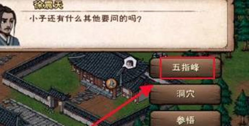 3、和徐震天对话,选择第一个五指峰选项。