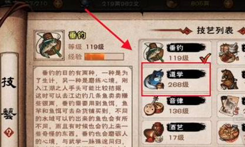 5、打开技艺页面,点击道学。