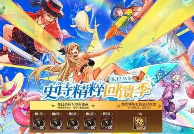 活动期间每周消耗疲劳值可领取深渊票以及史诗精粹自选礼盒,每周完成5次冒险团每日消耗疲劳值任务,可领取2个挑战者深渊精粹自选礼盒,活动期间共计可以领取2次。