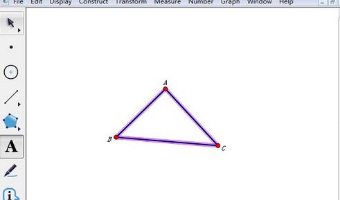 (2)单击菜单“构造”——“线段”(Ctrl+L),可以同时画出三边,用文本工具单击三个顶点,最终效果如图所示。
