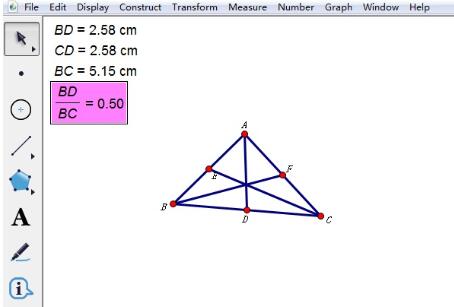 (1)选取点B、D,单击菜单“度量”---“距离”,量出BD的距离,同理量CD 和BC;