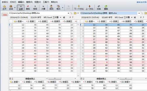其中,单击“标记全部“按钮,表格比较会话操作左右窗格内所有列均可见;单击”取消标记全部“,则表格比较会话操作左右窗格内所有列均被隐藏;单击”仅掩码不同“按钮,表格比较会话操作左右窗格内仅显示存在差异列。