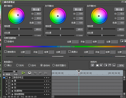 2、在信息窗口中双击“三路色彩校正”就进入其设置界面,如图所示: