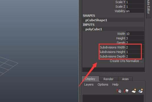 选择长方体在右侧的channelbox里设置参数如图