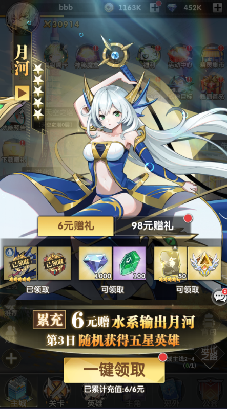 充值比例1元:10钻石 ★游戏内天天送648代金券; ★次日登入就送火系五星UR精灵; ★新服狂欢,完成任务送5星神精灵; ★累计登入8日送四系5精灵自选 ★完成英雄招募任务赢海量豪礼 ★游戏商城每日有0元超值礼包 ★每日签到赢海量豪礼 ★后缀说明:游戏内天天送648代金券