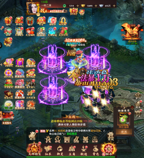 充值比例1元:10元宝 ★【进游福利】永久享0.1折,开局3.28元逆天特权,金手指5倍增效,属性暴涨,斩妖除魔,打遍天下无敌手。 ★【百万元宝】登录累送500万元宝,商城礼包买到手软,不心疼免费花,神兵利器手到擒来。 ★【通关升级】在线闯关即送vip大礼,轻轻松松直升v10,升级即可领取超多装备材料。 ★【七日登录】连续七天送海量材料叠加神兵+翅膀+时装一步飞升,所向披靡,斩鬼灭邪不在话下。 ★【在线好礼】天天放置挂机,就有百万银两、元宝、升级材料等到手,角色武器任意提升,爽到翻天。 ★【全民庆典】全民狂欢完成任务即可领取超级神兵大奖,战力爆表,法力飙升,原地起飞。 ★后缀说明:连续七天送海量材料叠加神兵+翅膀+时装一步飞升,所向披靡,斩鬼灭邪不在话下。