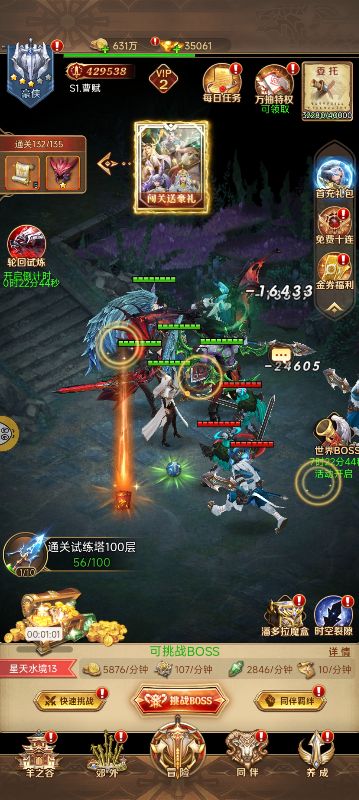 充值比例1元:10货币元宝 ★每天登陆送1500代金券,完成活跃任务再送500代金券,天天两千元代金券等你来拿,0氪也可礼包买不停; ★推图和挂机可得万抽、全套顶级sss阵容、大量充值卡、欧皇红包等海量福利; ★上线再送2000元充值卡,每天开箱还可得千元充值卡、大量顶级同伴; ★活跃送10星sss孙悟空,再送一套最强神灵UR阵容:盘古、神嬴政、神赵云、神花木兰、魔吕布; ★神藏宝库大量珍贵道具免费买。 ★后缀说明:通关2-8后,每天登陆送1500代金券,完成活跃任务再送500代金券